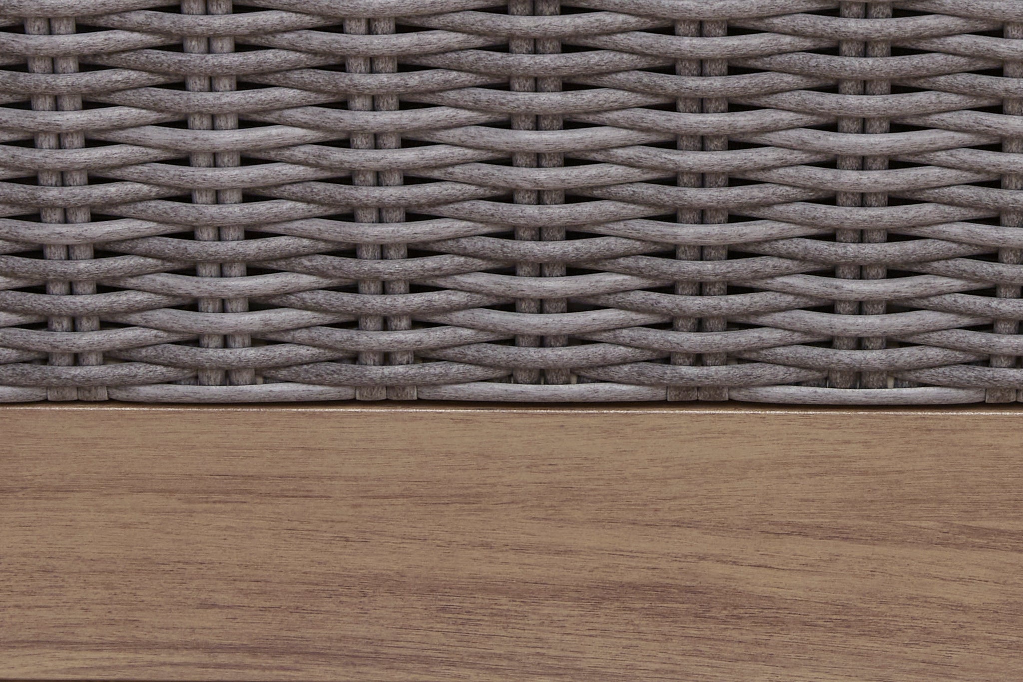 High style, meet sleek durability. This outdoor loveseat combines a contemporary silhouette with must-have longevity, so you can bring your eye for design alfresco. It impresses with the refined appeal of woven resin wicker and wood-look aluminum in a chic neutral color. And for easy cleanability and UV resistance, high-performing Nuvella® fabric covers the cushions.