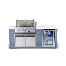 Upgrade your outdoor cooking game with the Mont Alpi MA400-AW, a 4-burner masterpiece of artwood and stainless steel. With an oversized white granite countertop, this island is as stylish as it is hassle-free. Perfect for modern and traditional patios, it's equipped with 4 burners and an integrated fridge for an all-inclusive grilling experience.