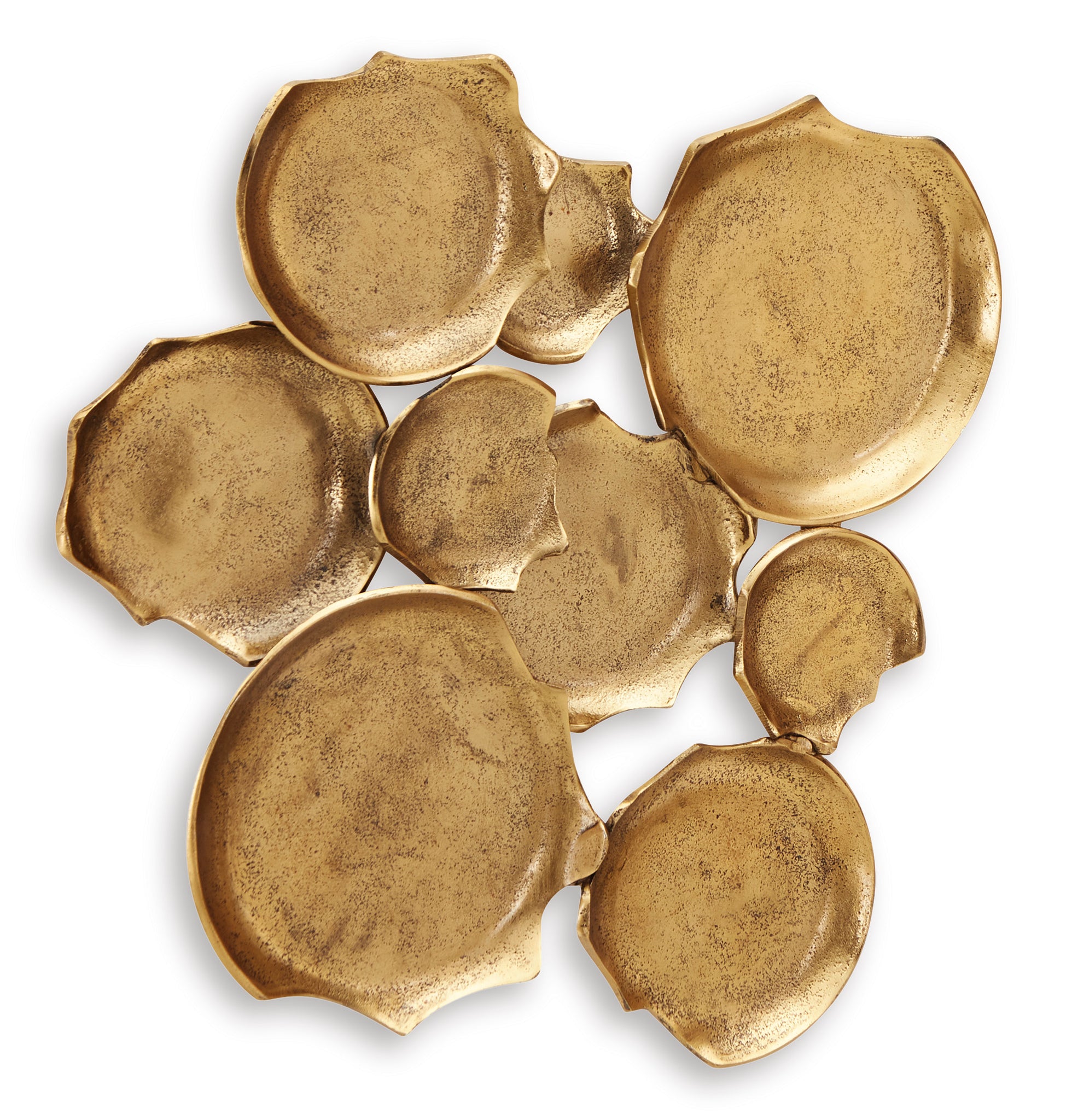 With a minimalistic design and antiqued gold-tone finish, this wall art exudes modern sophistication. Whether it's displayed vertically or horizontally, this alluring metal sculpture is on the cutting edge of cool.